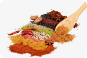 green chillies, coriander, herbs & spices.